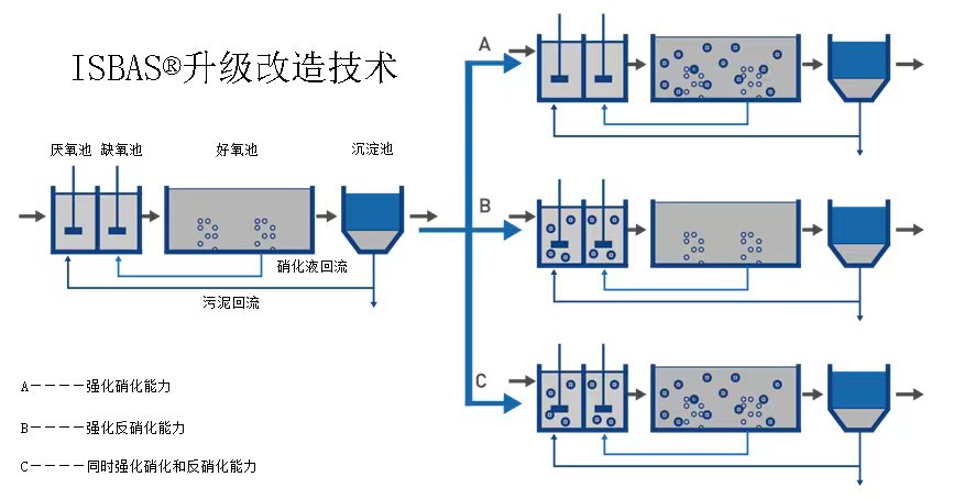 针对污水处理厂运行过程中出现的各类问题,以ISBAS®工艺包为核心,利用多种技术相结合,通过负荷核算向生化系统中不同功能区投加特种生物填料,提高各功能区主要功能微生物种群丰度,从而提高系统的处理效率。